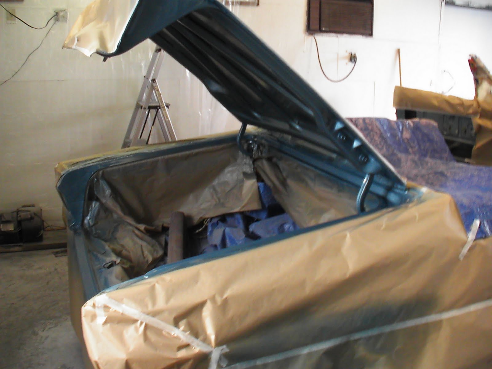 I was working on cleaning the shop and hanging up plastic turning it into a paint booth while the Princess was getting some rays and a few drops of rain. I think she almost cried when I put her back in the shop for the night. But not to worry old gal you will get some more sun shine today cause there is still more to be done on the shop.Later RB
